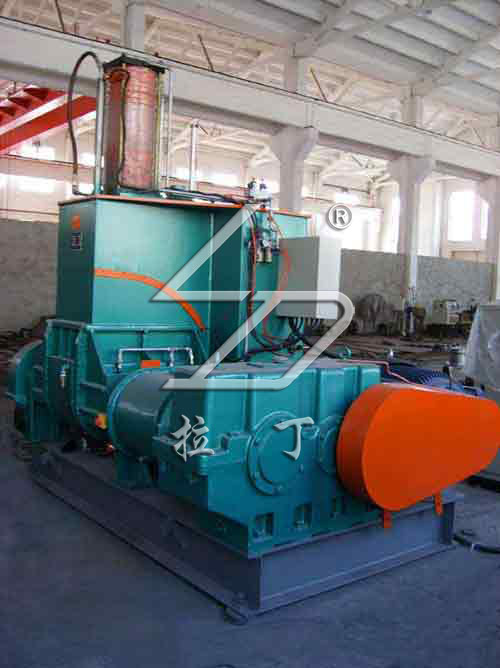 密煉機工作時,兩轉(zhuǎn)子相對回轉(zhuǎn),將來自加料口的物料夾住帶入輥縫受到轉(zhuǎn)子的擠壓和剪切,穿過輥縫后碰到下頂栓尖棱被分成兩部分,分別沿前后室壁與轉(zhuǎn)子之間縫隙再回到輥縫上方。在繞轉(zhuǎn)子流動的一周中,物料處處受到剪切和摩擦作用,使膠料的溫度上升,粘度減少,增加了橡膠在配合劑表面的濕潤性,使橡膠與配合劑表面接觸。配合劑團塊隨膠料一起通過轉(zhuǎn)子與轉(zhuǎn)子間隙、轉(zhuǎn)子與上、下頂栓、密煉室內(nèi)壁的間隙,受到剪切而破碎,被拉伸變形的橡膠包圍,穩(wěn)定在破碎狀態(tài)。同時,轉(zhuǎn)子上的凸棱使膠料沿轉(zhuǎn)子的軸向運動,有攪拌混合作用,使配合劑在膠料中混合均勻。配合劑如此反復(fù)剪切破碎,膠料反復(fù)產(chǎn)生變形和恢復(fù)變形,轉(zhuǎn)子凸棱的不斷攪拌,使配合劑在膠料中分散均勻,并達(dá)到適中的分散度。由于密煉機混煉時膠料受到的剪切作用比開煉機大得多,煉膠溫度高,使得密煉機煉膠的效率大大高于開煉機。